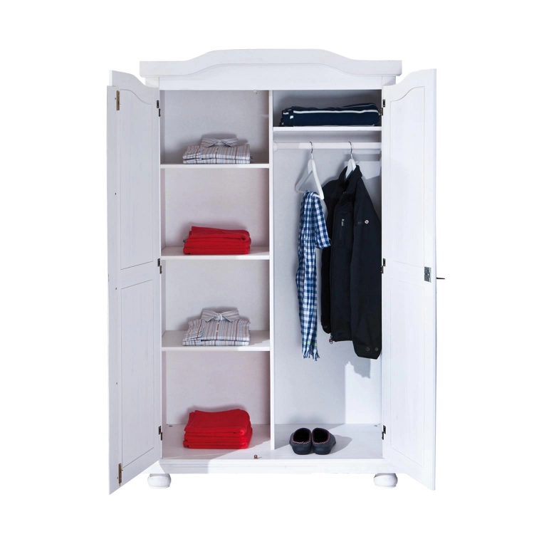 Materiál Masiv Barva Bílá Dekor dřeva borovice Otevírání dveří s otočnými dveřmi Rozměry (cm) 104 x 56 x 180 cm Váha: 62 kg Přepravní rozměry a info: Karton: 1 ks (rozměry, š/v/d: 60 × 22 × 167 cm) Kód produktu: mp-6762-hedda-satni-skrin / ID20900100 Návod k sestavení: Návod pro HEDDA šatní skříň -