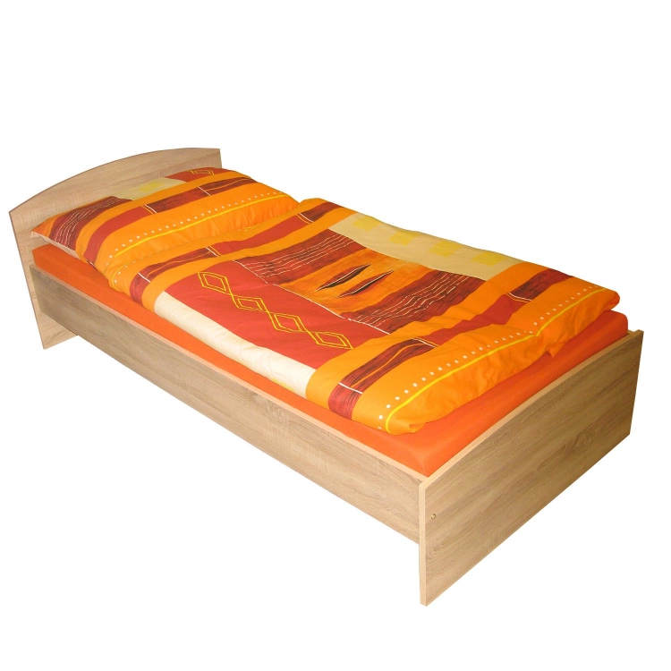 Jednolůžková postel v barevném provedení dub Sonoma. Výška sedu 41 cm, cena bez roštu a matrace. Doporučený rozměr matrace 90 x 200 cm (M2, M5, M9, M12, M14, M24, M26) a rošt R1. K jednolůžku možno dokoupit úložný prostor 147A barevné varianty: 343A buk, 343B bílá, 60343 ořech / bílá.
