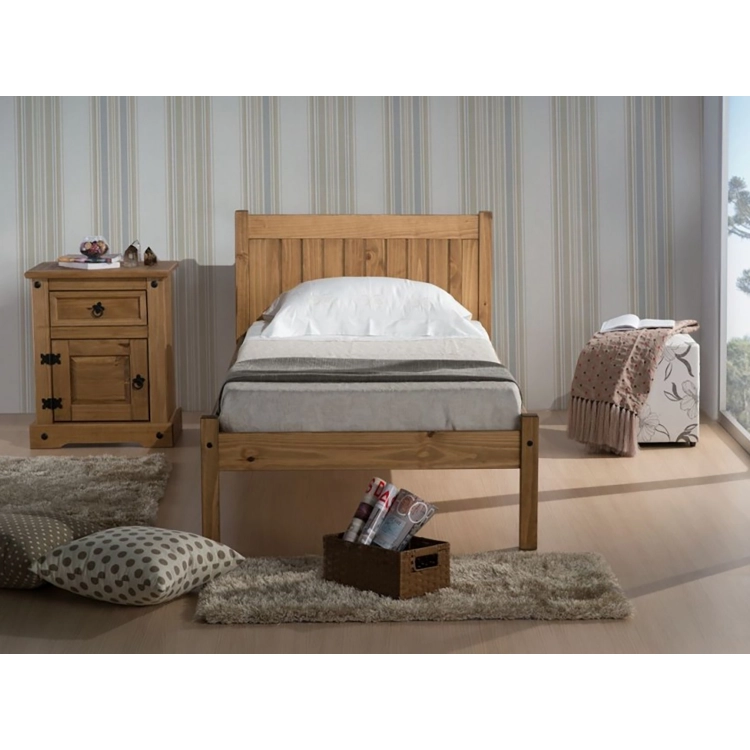 materiál masiv borovice voskovaná v medovém odstínu rošt je součástí dodávky doporučený rozměr matrace 90 × 200 cm součást sestavy Corona