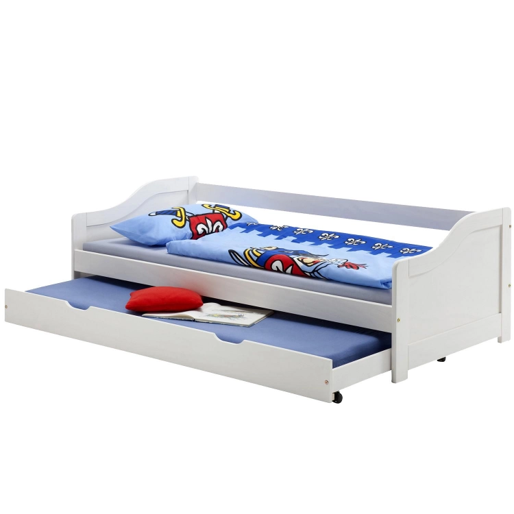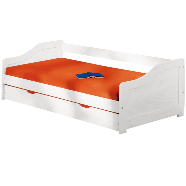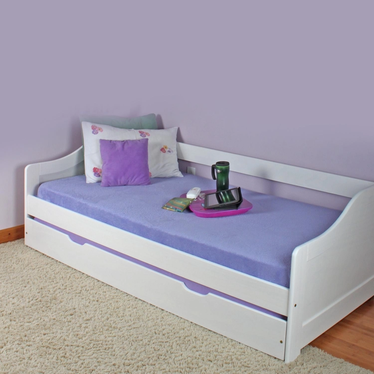 materiál masiv borovice, barevné provedení bílý lak výška sedu postele 37 cm dřevěný laťkový rošt je v ceně, matrace nejsou v ceně výsuv možno využít jako úložný prostor nebo jako přistýlku doporučená výška matrace pro přistýlku 10 cm doporučený rozměr matrací 90 × 200 cm Leonie ID20900215