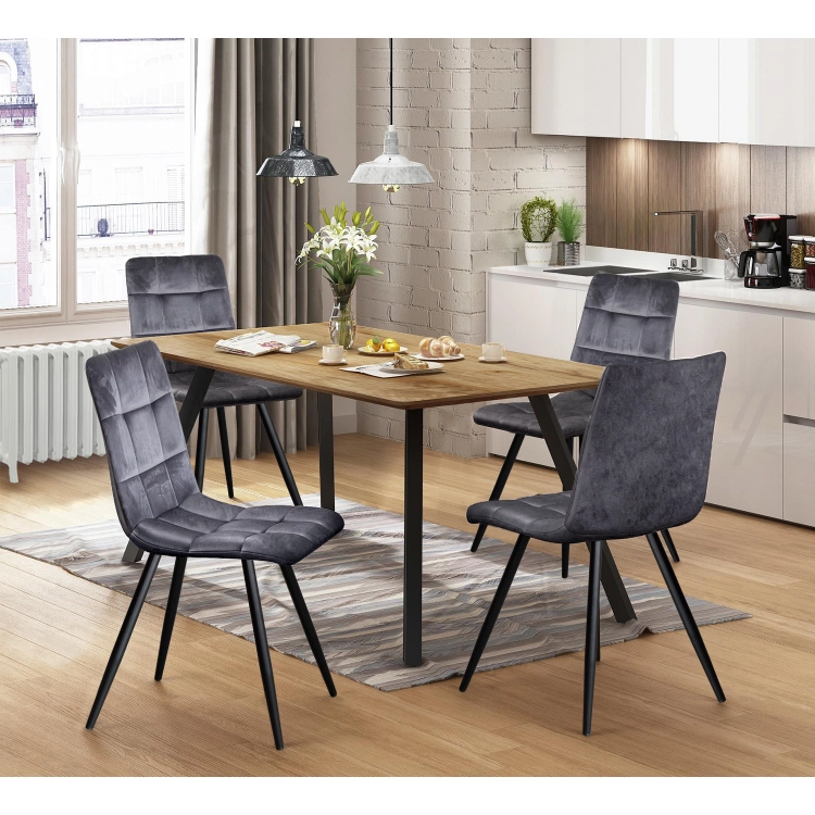 jídelní stůl BERGEN 4090 a 4 jídelní židle BERGEN 4091 stůl kovová konstrukce, barevné provedení černá deska MDF, barevné provedení dub Wotan židle sametový potah, barevné provedení šedá kovová konstrukce, barevné provedení černá, výška sedu 51 cm rozměr stolu (š/h/v): 140 × 80 × 75 cm, rozměr židle (š/h/v): 56 × 44 × 86 cm