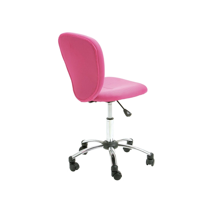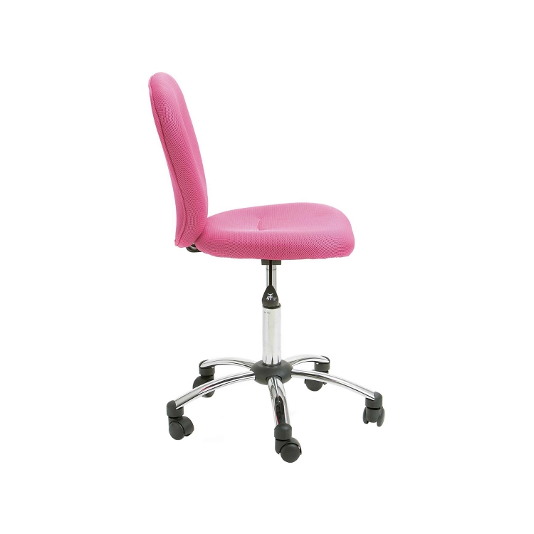 potah textilní síťovina, barevné provedení růžová chromovaný kříž, výškově nastavitelná, výška sedu 44-54 cm