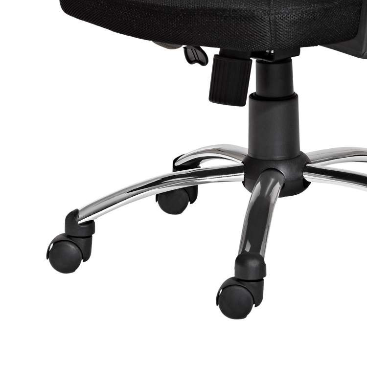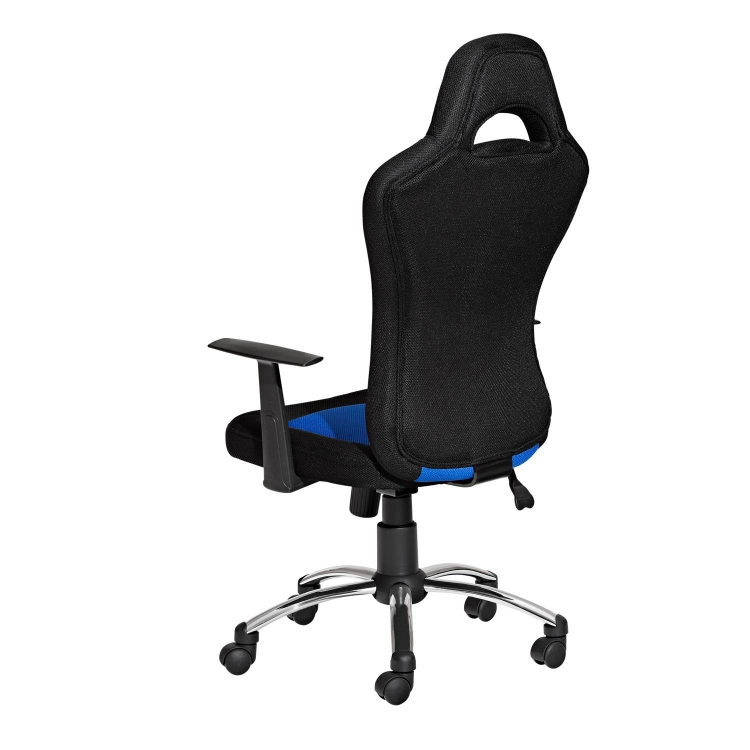 potah textilní síťovina, barevné provedení černá / modrá chromovaný kříž, houpací mechanismus výškově nastavitelné, výška sedu 45-55 cm, výška opěradla 73 cm doporučená nosnost do 120 kg