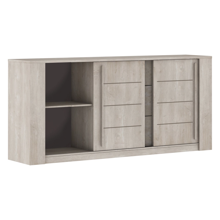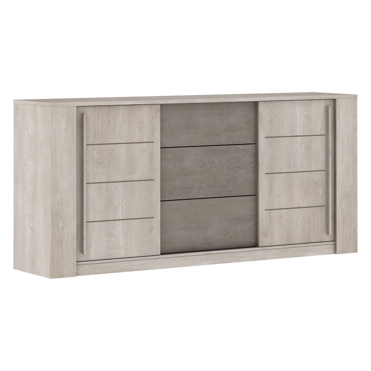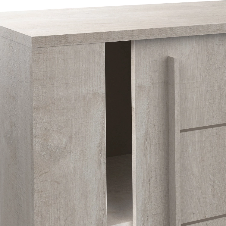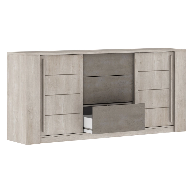 barevné provedení dub Champagne / béžový beton 2 posuvné dveře, za každými 1 variabilní police 3 zásuvky s kovovými pojezdy