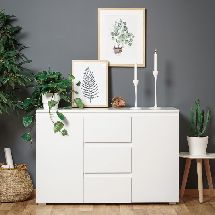 Barva Bílá Rozměry (cm) 120 x 40 x 80 cm Váha: 46 kg Přepravní rozměry a info: Karton: 2 ks (rozměry, š/v/d: 42 × 15 × 96 cm, 42 × 7 × 129 cm) Kód produktu: mp-fn2254-komoda-2-dvere-3-zasuvky-image-4-bila / FN2254 Návod k sestavení: Návod pro Komoda 2 dveře + 3 zásuvky IMAGE 4 bílá -