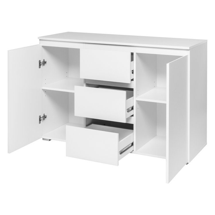 barevné provedení bílá 2 dveře, 2 police, 3 zásuvky s kovovými pojezdy