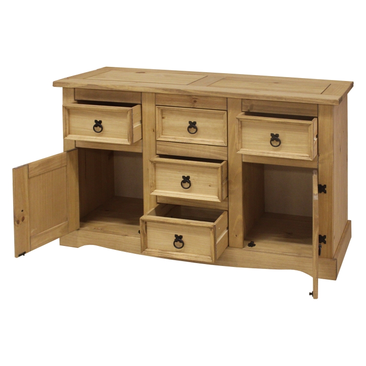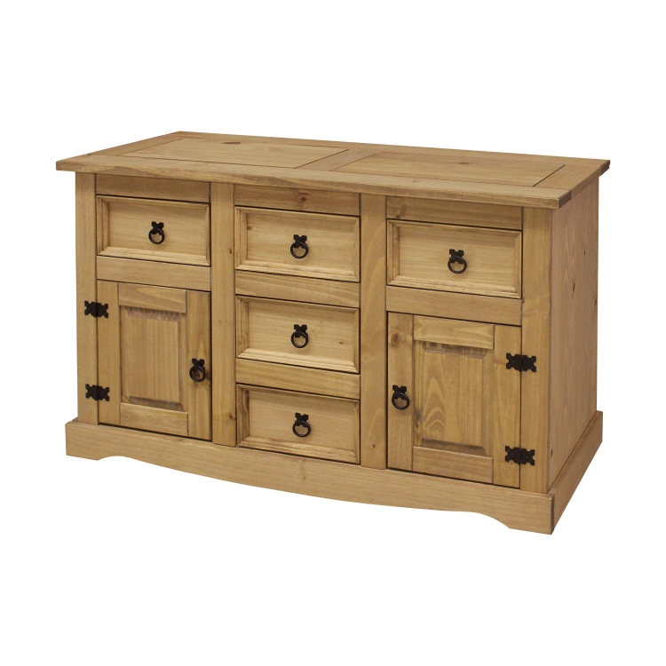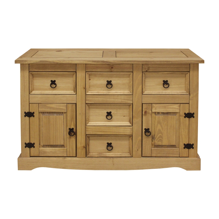 materiál masiv borovice voskovaná v medovém odstínu 2 dvířka, 5 zásuvek, kovové ozdobné úchytky možno doplnit nástavcem Corona 16465 součást sestavy Corona