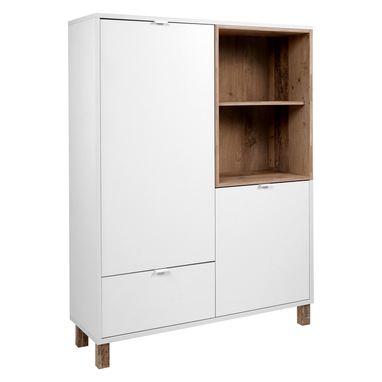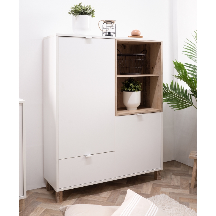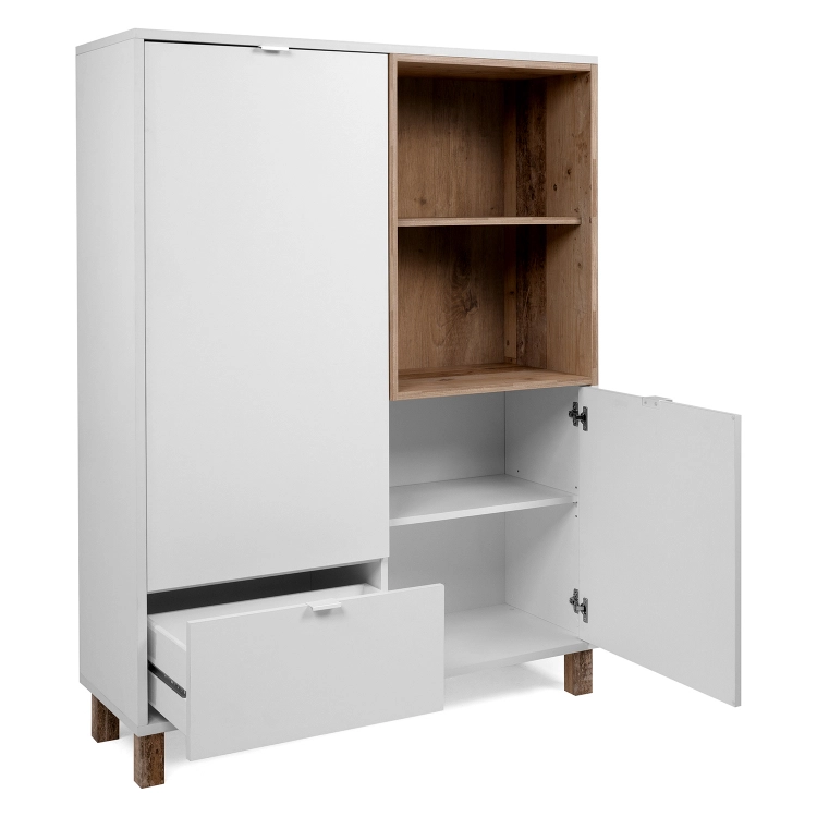 barevné provedení světlý antik / bílá 1 zásuvka s kovovými pojezdy 2 dvířka, 3 variabilní police, kovové úchytky