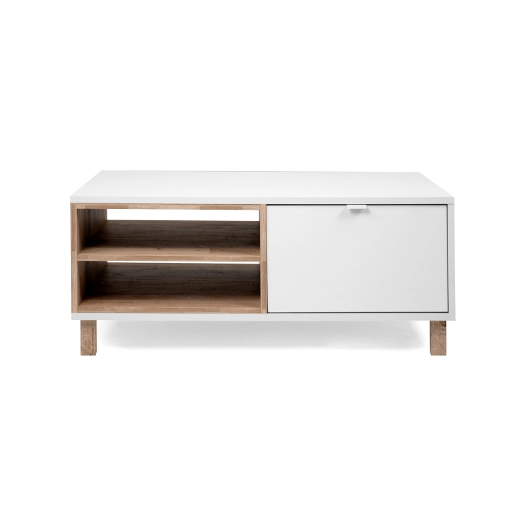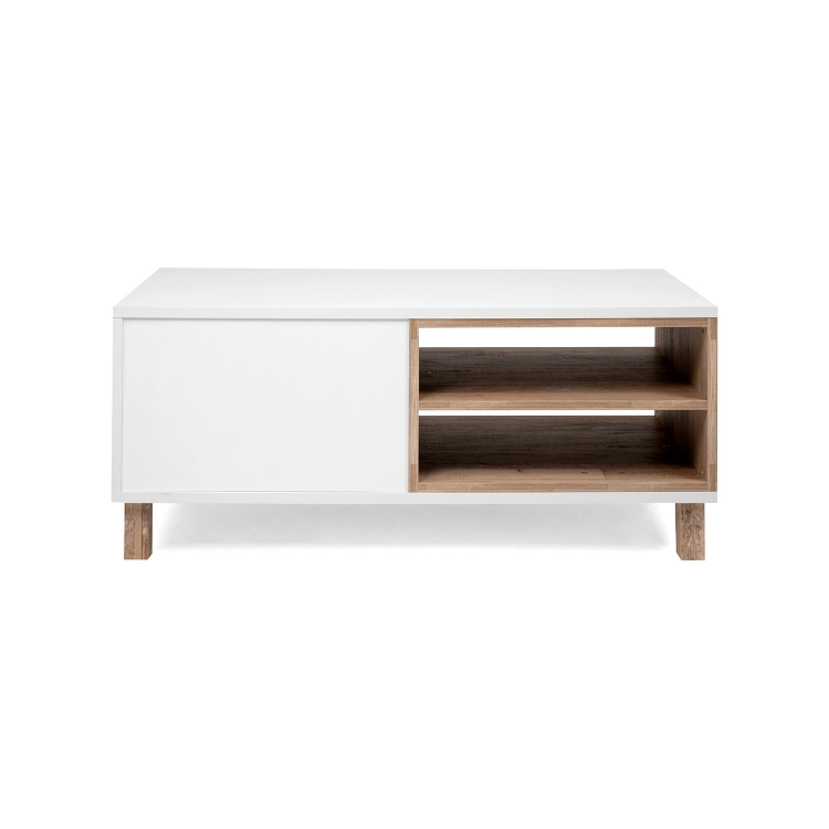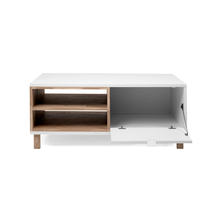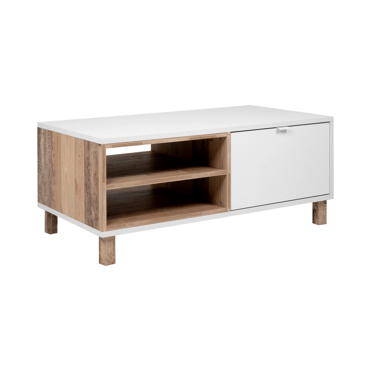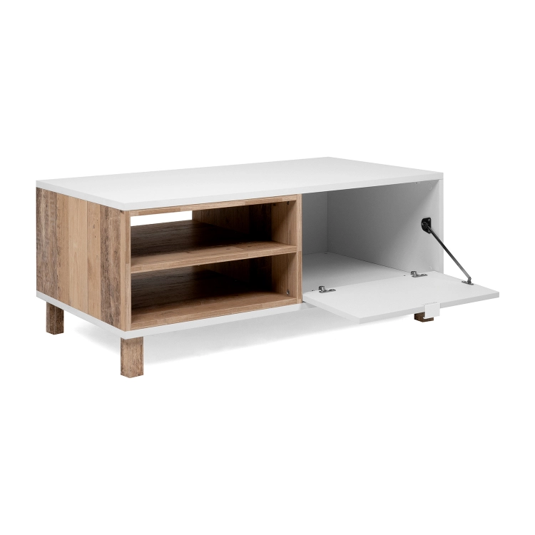 barevné provedení světlý antik / bílá 2 otevřené police, 1 malá výklopná dvířka, kovové úchytky