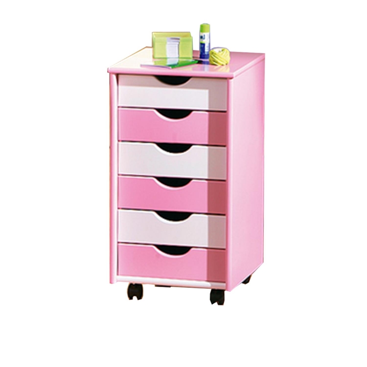 materiál kombinace masiv / MDF, barevné provedení růžová / bílá 6 zásuvek, pojízdný na kolečkách