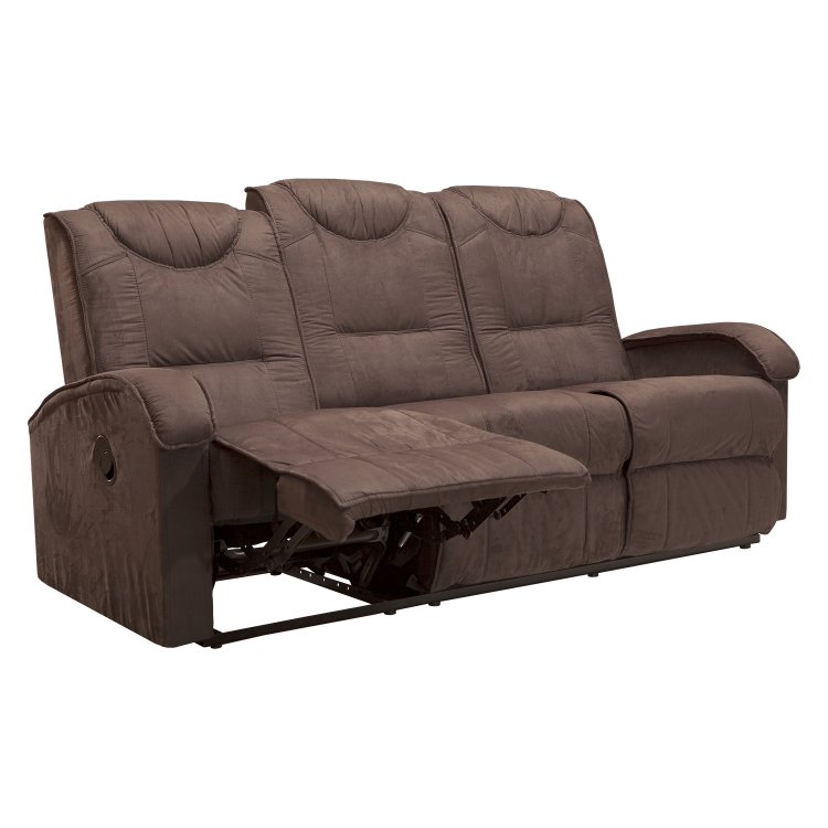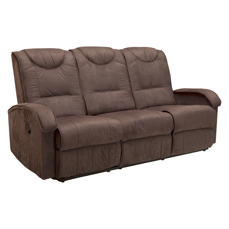 potah broušená kůže – imitace, barevné provedení hnědá dva pevné a jeden polohovací sedák výška sedu 46 cm, výška opěradla 63 cm
