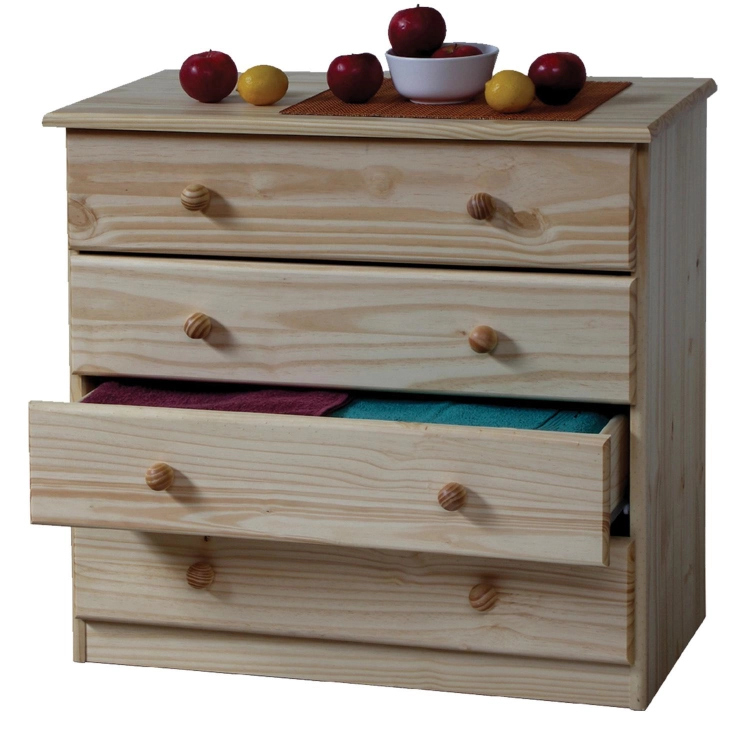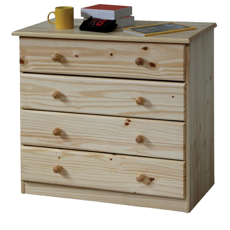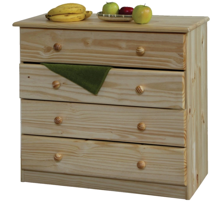 materiál masiv borovice, lakované provedení 4 široké zásuvky s kovovými pojezdy, hloubka zásuvky 32,5 cm