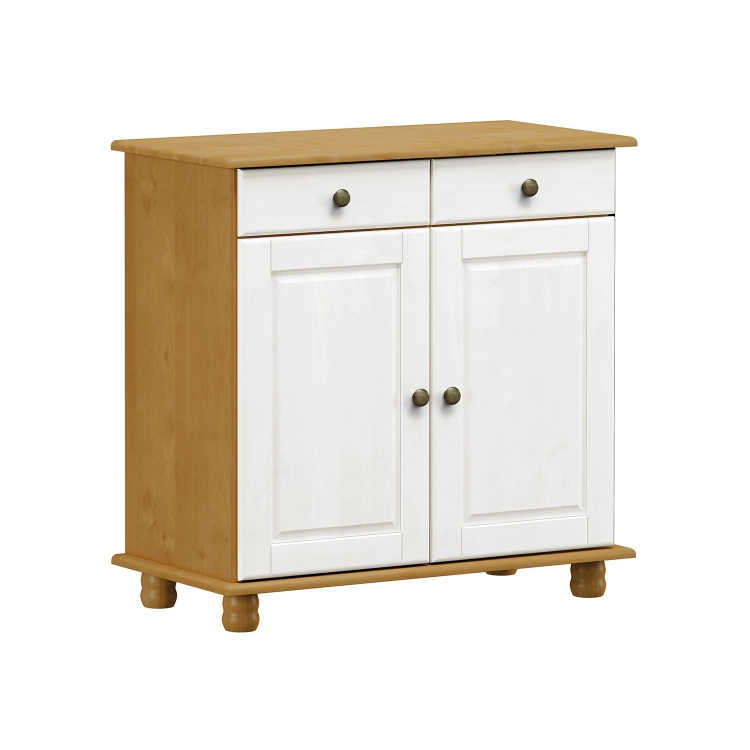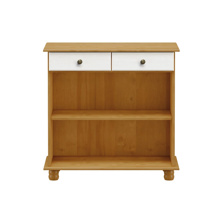 materiál masiv borovice, barevné provedení dub / bílý lak 2 dveře, 2 zásuvky s kovovými pojezdy, 1 police