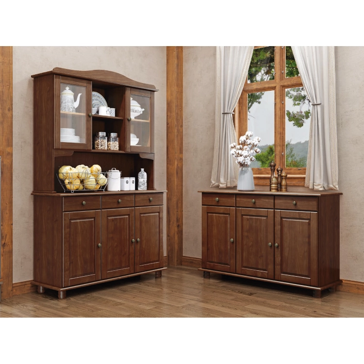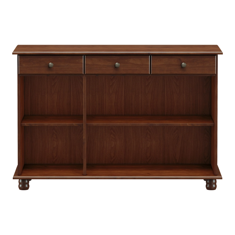materiál masiv borovice, barevné provedení tmavě hnědý lak 3 dveře, 3 zásuvky s kovovými pojezdy, 1 police