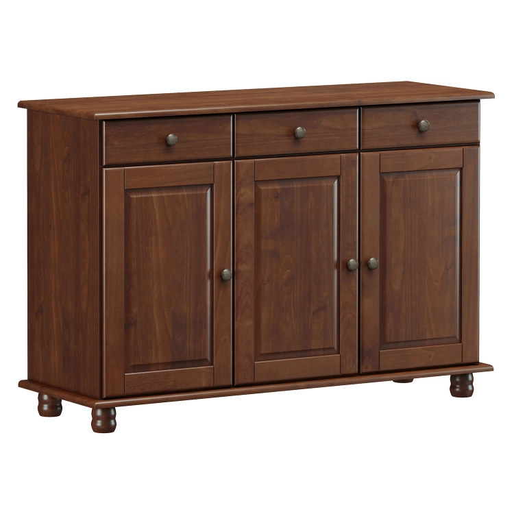 Materiál Masiv Barva Hnědá Dekor dřeva borovice Rozměry (cm) 129 x 43 x 86 cm Váha: 30 kg Přepravní rozměry a info: Karton: 1 ks Kód produktu: mp-8927w-pribornik-3-dvere-3-zasuvky-rubi-tmave-hneda / 8927W -