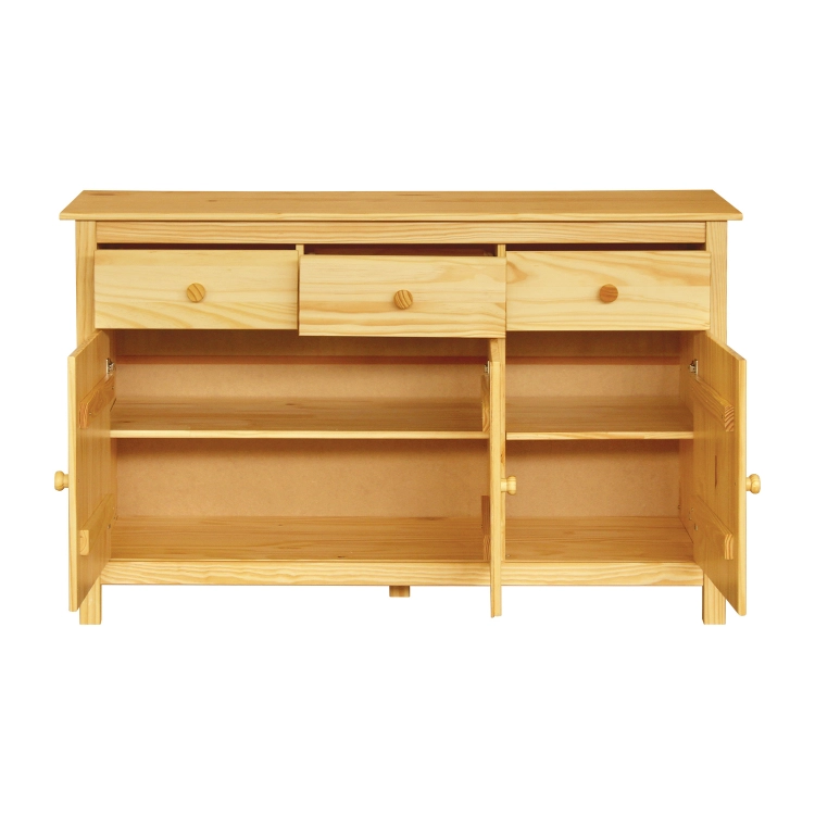 materiál masiv borovice, lakované provedení 3 dveře, 3 zásuvky s kovovými pojezdy vhodný doplněk nástavec TORINO 8063