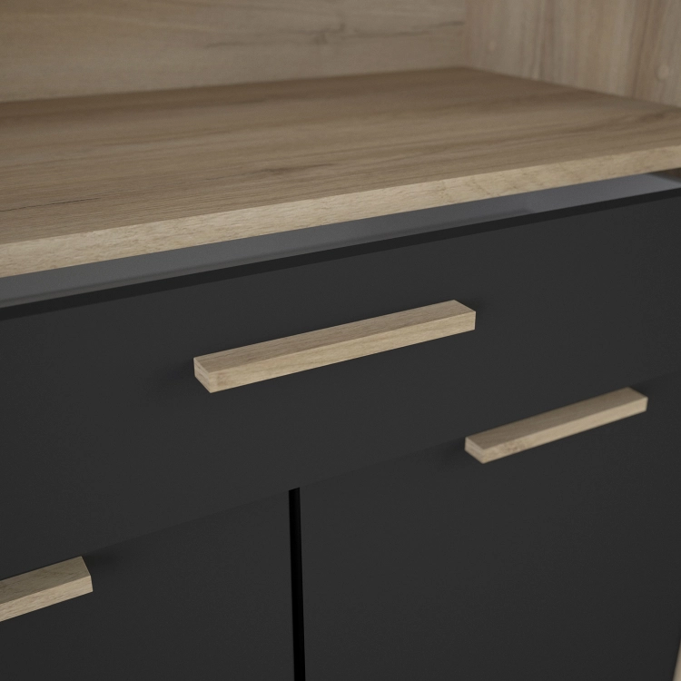 barevné provedení dub Kronberg / černá 4 dvířka, 2 police, 1 zásuvka s kovovými pojezdy maximální nosnosti uvedeny v návodu k montáži