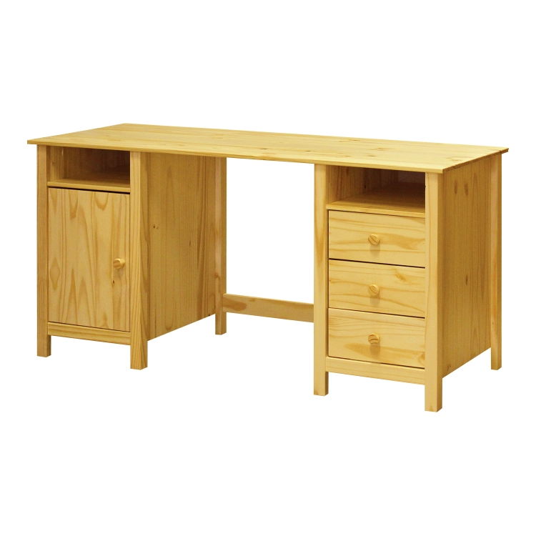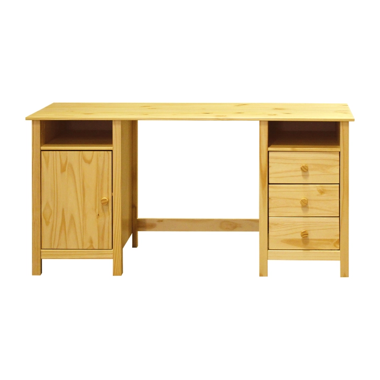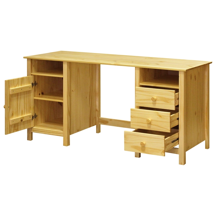 materiál masiv borovice, lakované provedení 2 otevřené police, 1 dvířka a 3 zásuvky s kovovými pojezdy výsuv není součástí dodávky ke stolu je možno dokoupit výsuvnou desku na klávesnici 8840