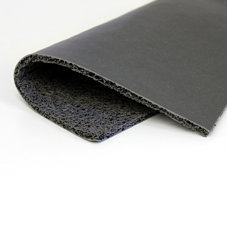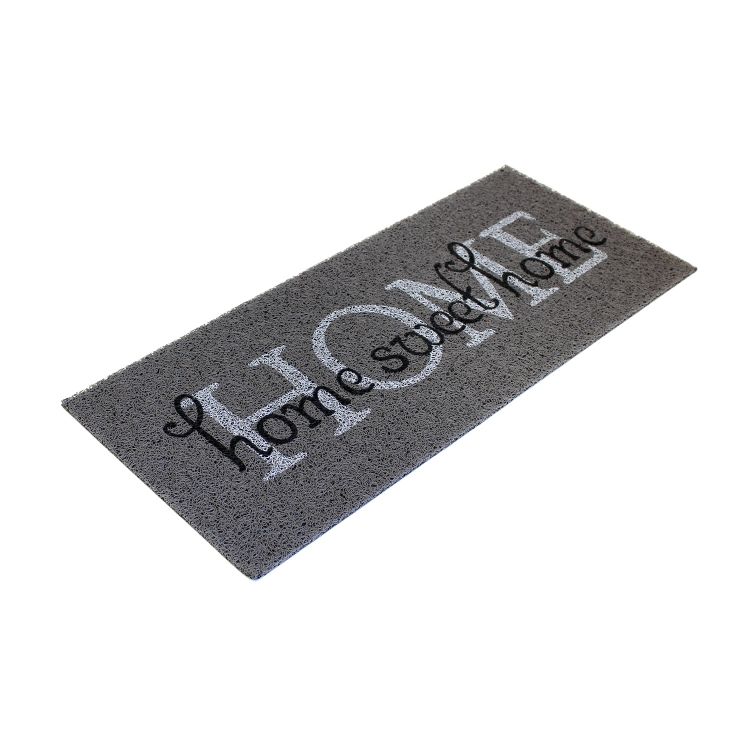 materiál 100% Polyvinylchlorid, barevné provedení šedá s černým a bílým potiskem odolná, snadno omyvatelná protiskluzová rohožka pro exteriér materiál je antibakteriální a odolný proti plísním
