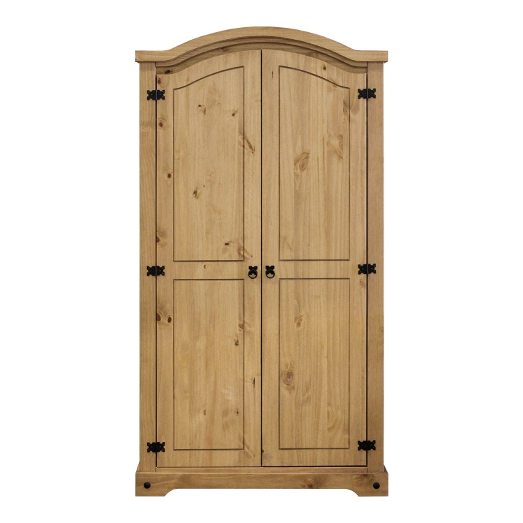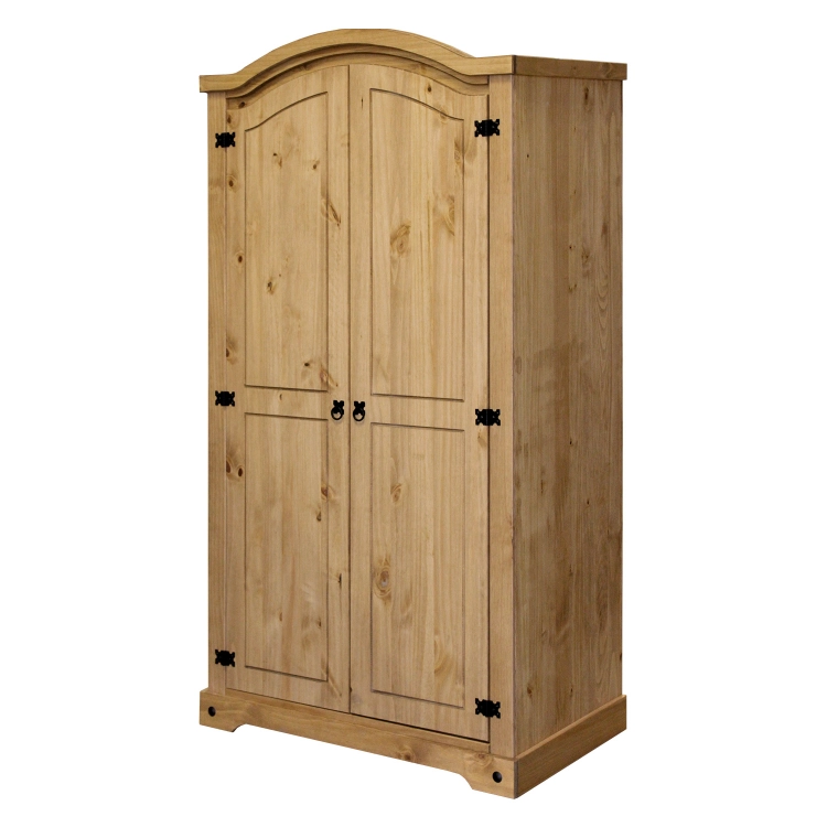 materiál masiv borovice voskovaná v medovém odstínu šatní skříň s šatní tyčí a policí na klobouky kovové ozdobné úchytky součást sestavy Corona