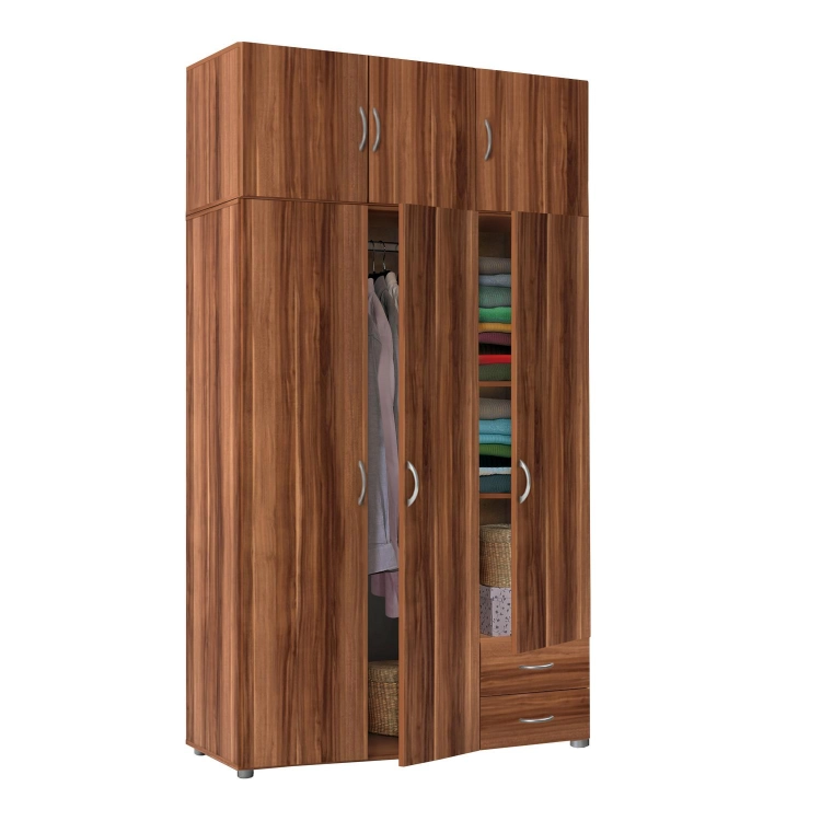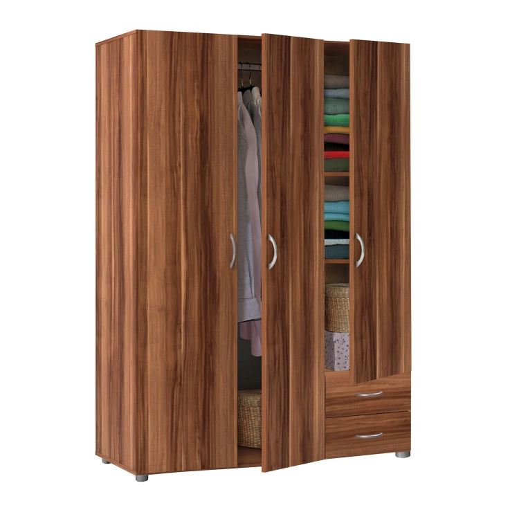 Dekor dřeva ořech Otevírání dveří s otočnými dveřmi Rozměry (cm) 121 x 52 x 168 cm Váha: 66 kg Přepravní rozměry a info: Karton: 2 ks (rozměry, š/v/d: 44 × 10 × 185 cm, 53 × 9 × 168 cm) Kód produktu: mp-in105066-skrin-3dverova-best-orech / IN105066 Návod k sestavení: Návod pro Skříň 3dveřová BEST ořech -