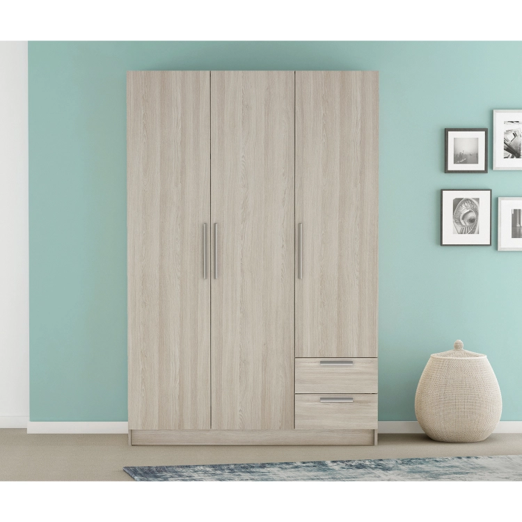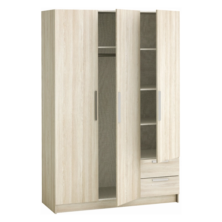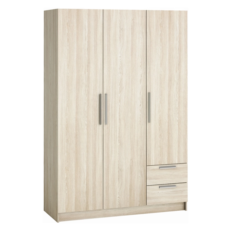 Dekor dřeva dub Otevírání dveří s otočnými dveřmi Rozměry (cm) 133 x 52 x 199 cm Váha: 93 kg Přepravní rozměry a info: Karton: 2 ks (rozměry, š/v/d: 47 × 9 × 198 cm, 53 × 10 × 207 cm) Kód produktu: mp-342716-skrin-3dverova-glory-dub / 342716 Návod k sestavení: Návod pro Skříň 3dveřová GLORY dub -