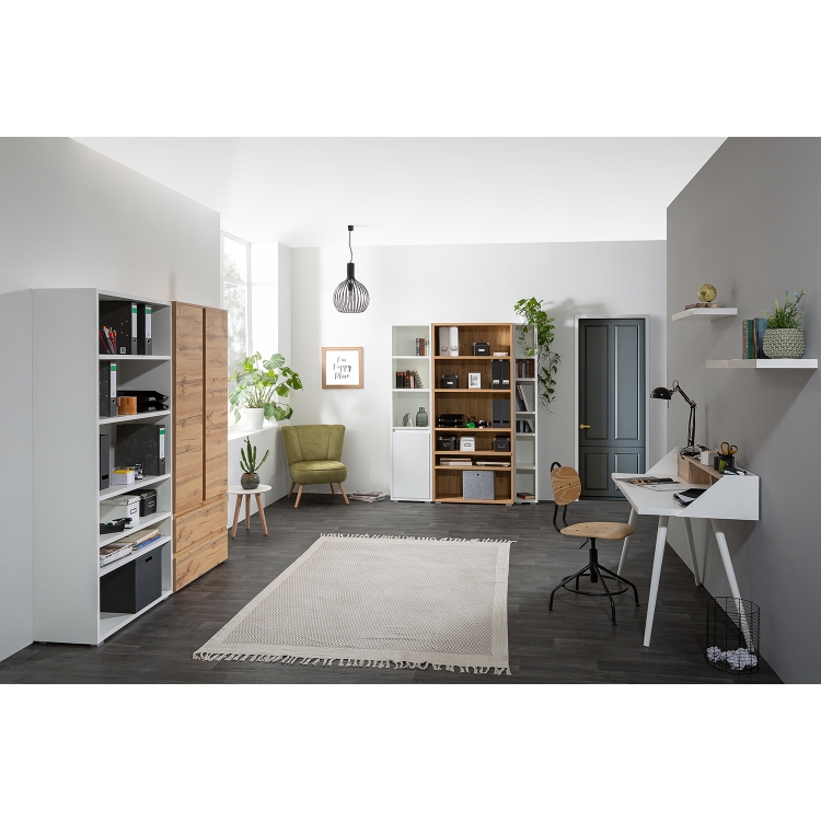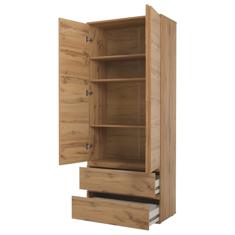 barevné provedení zlatý dub 2 dveře, 3 police, 2 široké zásuvky s kovovými pojezdy