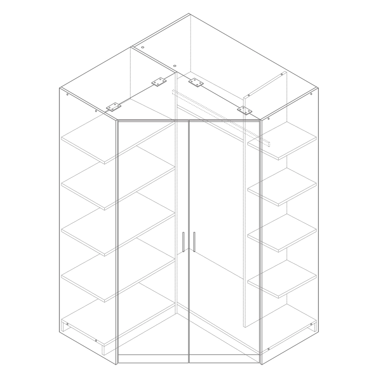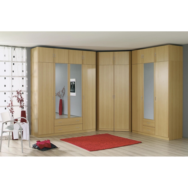 barevné provedení buk rohová šatní skříň, 9 polic a šatní tyč možno doplnit o nástavec 11555