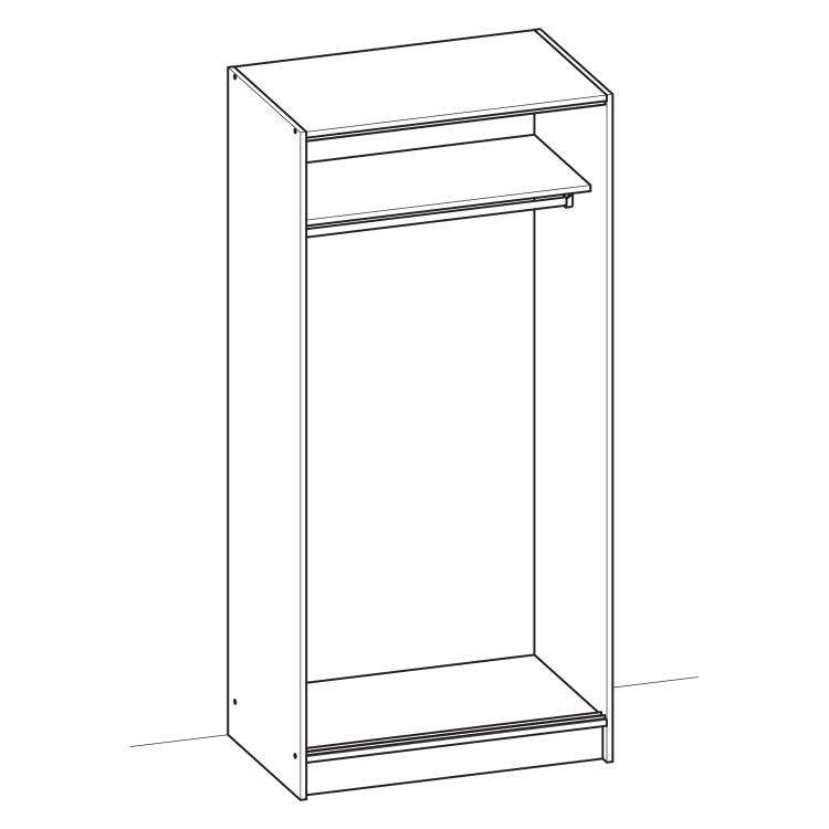 barevné provedení buk posuvné dveře, šatní skříň vybavená šatní tyčí a policí