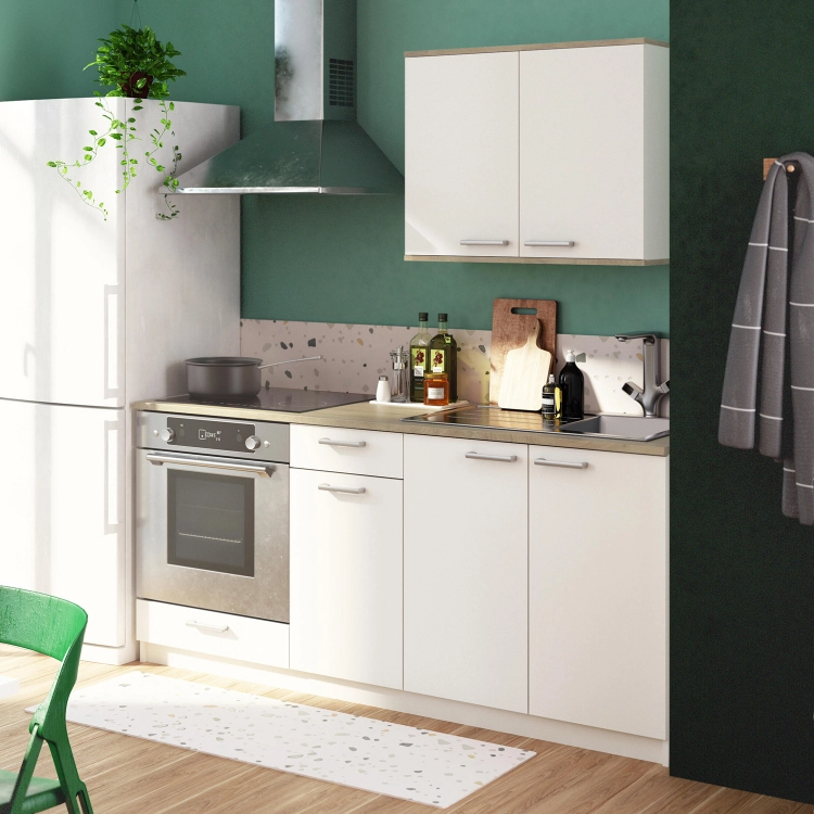 Barva Bílá Dekor dřeva dub Rozměry (cm) 80 x 28 x 60 cm Váha: 18 kg Přepravní rozměry a info: Karton: 1 ks (rozměry, š/v/d: 40 × 13 × 86 cm) Kód produktu: mp-300433-zavesna-skrinka-cooking-dub-bila / 300433 -