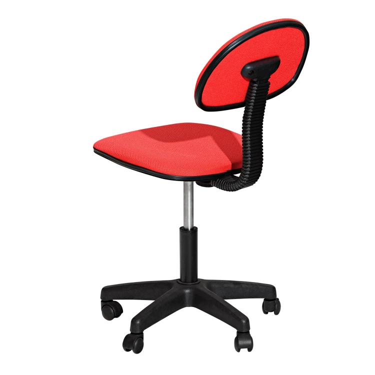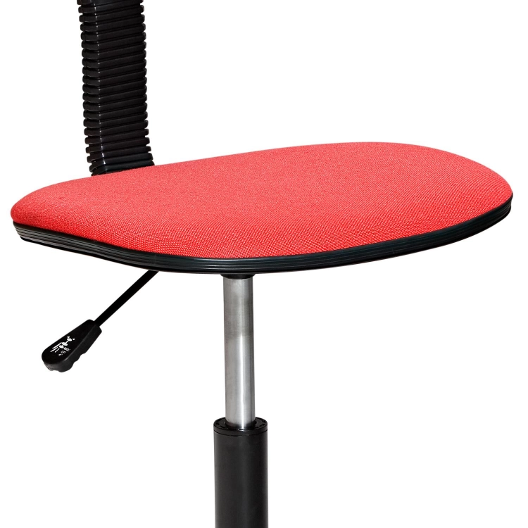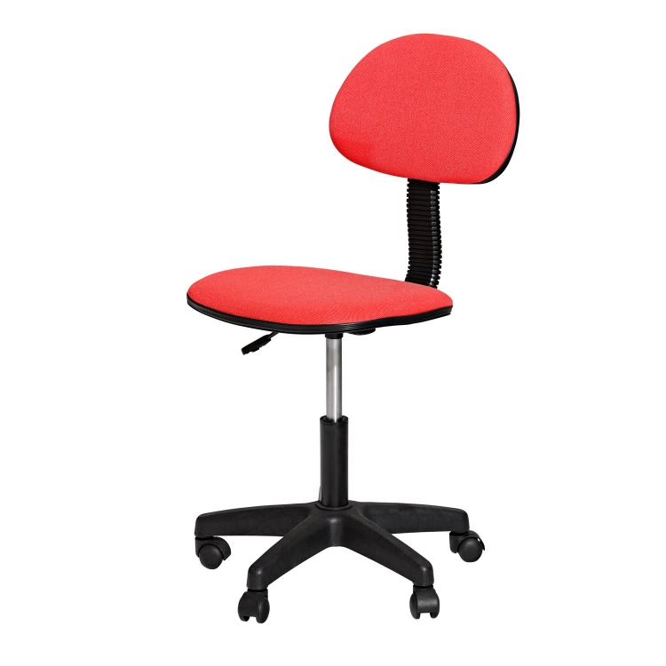 textilní potah, barevné provedení červená výškově nastavitelná, výška sedu 39-48 cm nastavitelná opěrka zad, výška opěrky 40 cm doporučená nosnost do 75 kg
